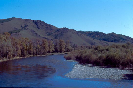 Ich wache leider mit Kopfschmerzen auf. Heute fahren wir mit dem Bus aufs Land. Die Straße ist gut und so kommen wir schnell in die Hügel rund um Ulan Bator. Die Berge werden höher. Sie sind bedeckt mit dunklen Nadelbäumen. Terelj ist ein Naturschutzgebiet in der Mongolei, das uns die Möglichkeit bietet, ohne großen Aufwand die Landschaften der Mongolei kennen zu lernen. Ein klarer Fluss fließt durch das Tal, in dem wir schließlich ankommen.