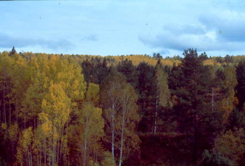 Von mittags an wird die Landschaft gebirgiger und ist auch dichter besiedelt. Auf den Bergen wachsen Birken, deren Blätter schon anfangen, die Farbe zu wechseln. Dazwischen stehen dunkle Fichten und helle Lärchen