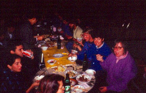 In der ersten Nacht wird es eiskalt. Ich habe meinen Schlafsack auf meine Decke gelegt und zittere trotzdem vor Kälte. Mit in meinem Zimmer sind ein Amerikaner und eine Kanadierin, Marion. An Einschlafen ist lange nicht zu denken, weil in der Diskothek nebenan die Musik auf voller Lautstärke dröhnt.