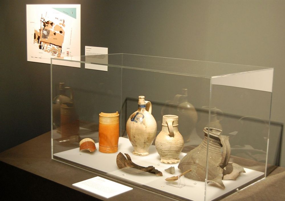 Was war für die Archäologen am aufschlussreichsten? Alles, was man in alten Klogruben gefunden hat, denn diese wurden von alters her auch als Abfallgruben genutzt. Für die Ausgräber war das sicherlich nicht immer ein einfacher Job. Da wurde bei Regen und Sonnenschein im Schlamm alter Höfe und des früher nur mit Planken befestigten Weges gegraben. So grub man sich Schicht für Schicht durch die Abfallgruben.
