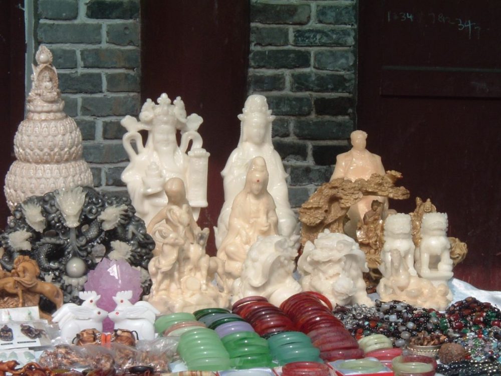 Als das Schiff mal wieder anlegte und wir durch eine schier endlose Reihe von Souvenirbuden geschleust wurden, fragte ich einen Mann: „Hast Du einen Flaschenöffner?“ 开瓶子的东西? (Ein Ding zum Öffnen von Flaschen?) Nein, hatte er nicht, aber er fragte seine Freunde. Schon reichten mir alle ihre persönlichen Flaschenöffner entgegen. Da waren einige merkwürdige Gerätschaften dabei. Ich stand in einer heftig diskutierenden Menge und schaute mich um. Alle lachten, nannten enorm hohe Preise und meinten, dass ihrer der beste sei.