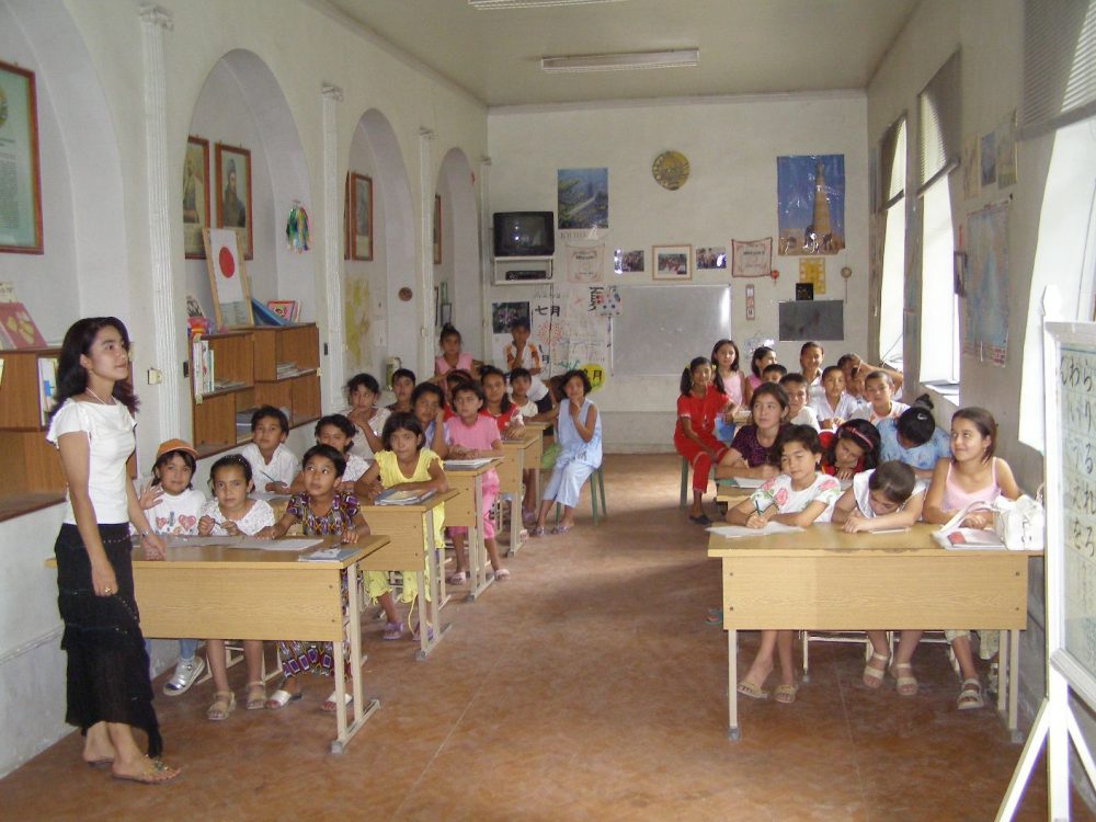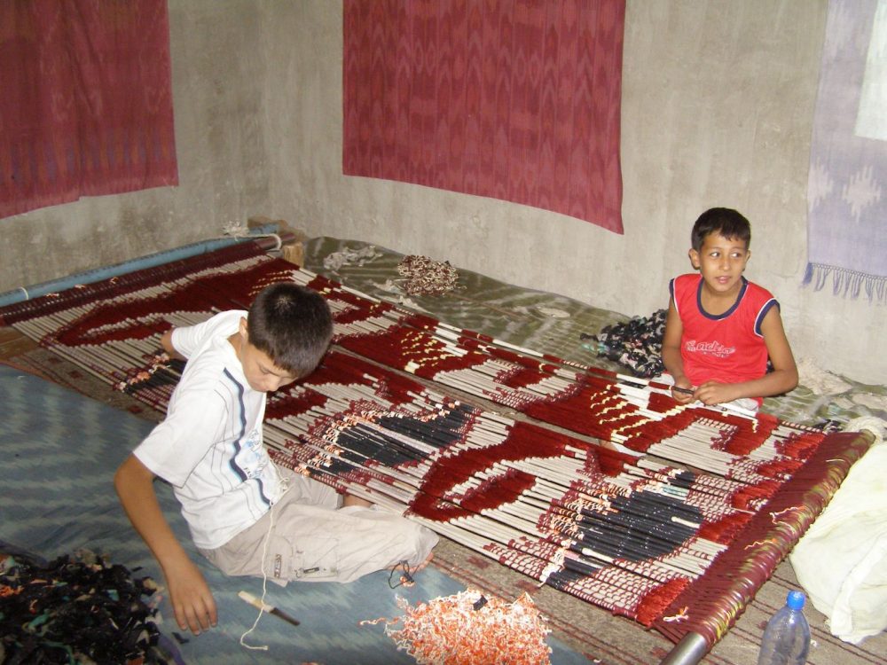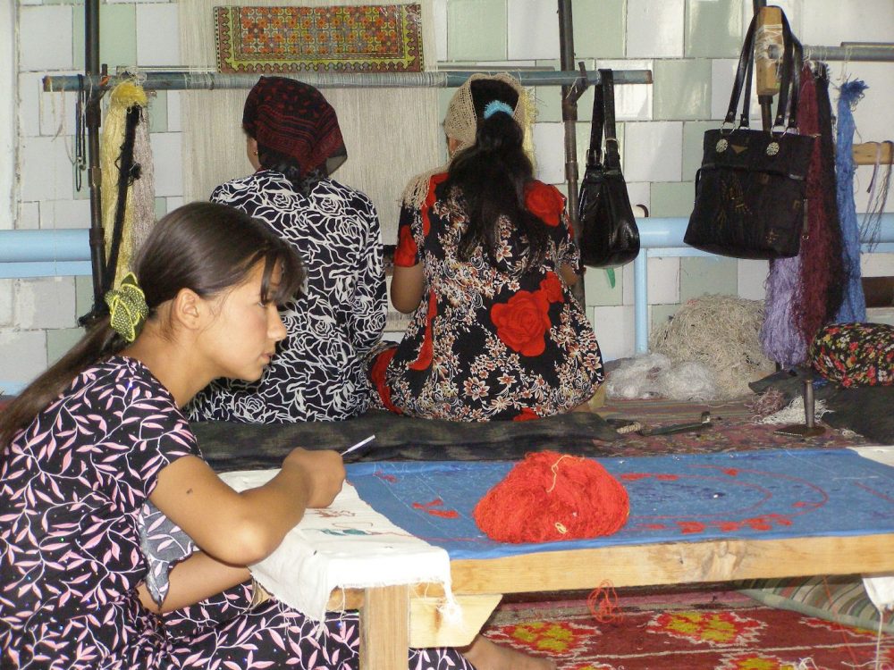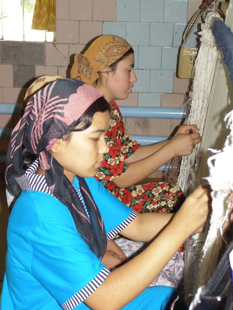 Der Werkstatt ist eine Schule angeschlossen, die uns stolz gezeigt wird. Es ist noch gar nicht so üblich, dass alle Kinder in Usbekistan zur Schule gehen können. Vor allem Mädchen sind bei der Bildung benachteiligt.