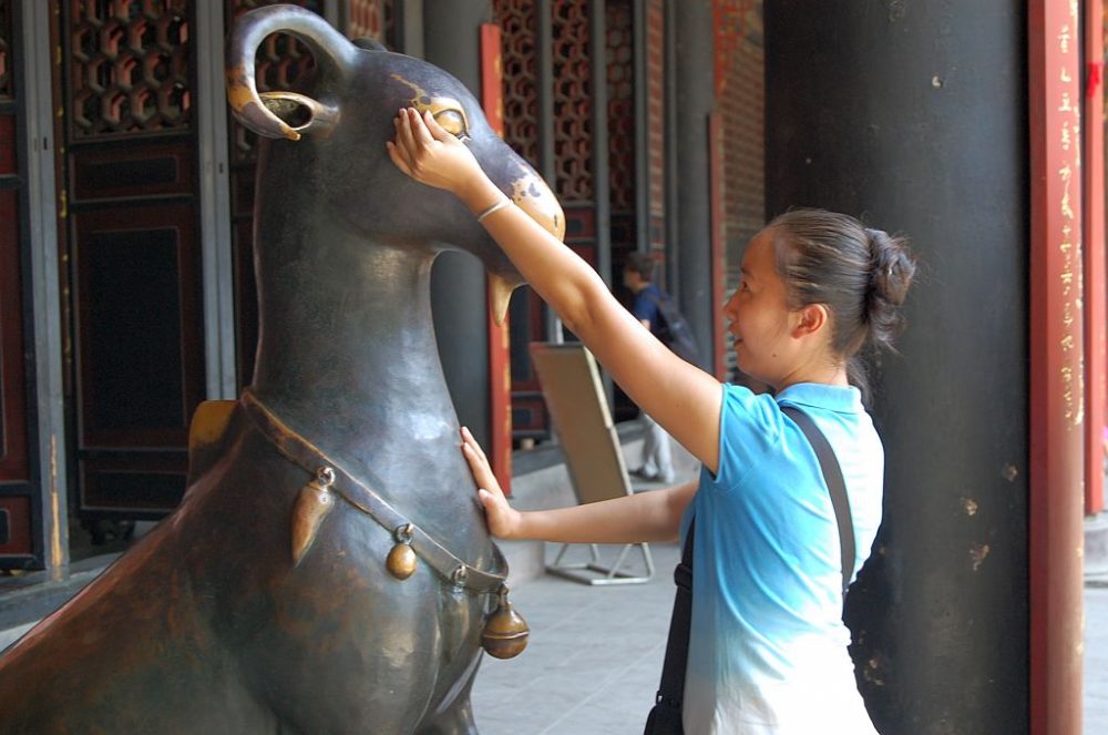 Ein Kernpunkt der Lehren von Lao Zi ist es, dass man sich die Unschuld und Offenheit eines Kindes bewahren soll. Diesem Fakt und der bedeutungsvollen Begegnung an diesem Ort ist der Tempel gewidmet, in dem besonders die Ziegen eine zentrale Rolle spielen.
