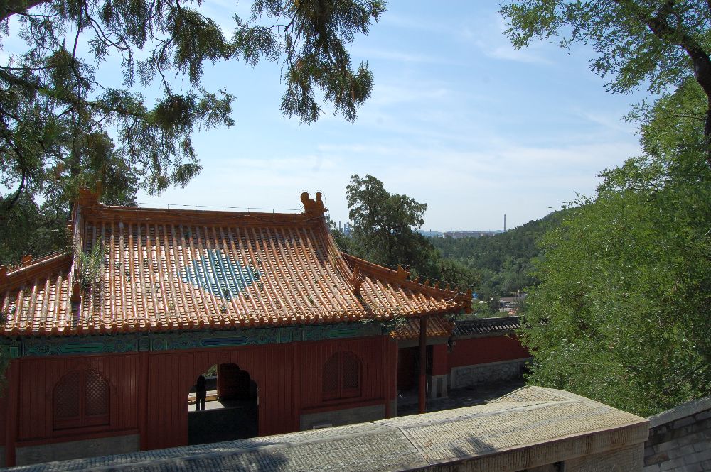 Und dann wieder runter. Mein Bedarf an Treppen war für heute gedeckt. Für ein paar Minuten setzte ich mich zu dem Eingangskontrolleur. Wie schön, dass ich Chinesisch spreche! So konnte ich Fragen stellen und ein wenig mit dem Mann sprechen. Wobei: Er sprach ein sehr Dialekt gefärbtes Chinesisch, das ich nur teilweise verstand. Er erzählte von den Zerstörungen während der Kulturrevolution und wie toll es war, dass der Tempel renoviert wurde und jetzt der Öffentlichkeit zugängig ist. Nein, es gäbe keine Mönche mehr. Diese müssten ja von irgendwas leben, das kostet Geld und das könne man sich nicht leisten.