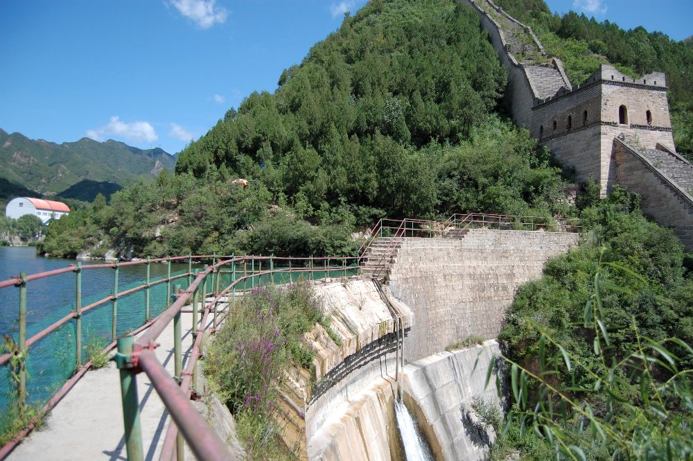 Mit einem etwas unsicheren Gefühl ging ich weiter in die Richtung, die mir die nette Souvenir- und Wasserverkäuferin wies. Ich querte die kleine Staumauer am See, immer mit Blick auf die Große Mauer, die sich den Berg hinaufzog und sehr wild aussah. Der Weg war ein besserer Trampelpfad. War ich hier wirklich richtig? Doch ganz alleine war ich nicht. Junge Leute überholten mich fröhlich, andere kamen mir entgegen. Ganz oben konnte ich Menschen auf der Großen Mauer sehen.