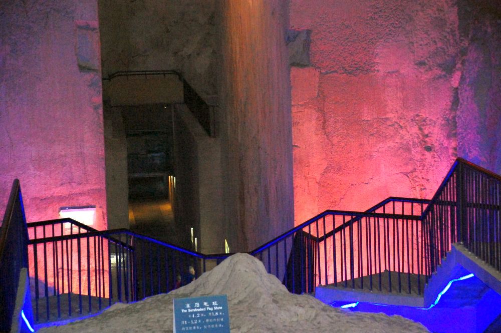 Neben der Terrakotta-Armee von Xuzhou umfasst der Archäologische Park auch das Grab des Königs Liuwu. Damit man sich einen Eindruck von dem Grab machen kann, führt eine lange Treppe in den düsteren Untergrund. Den habe ich mir, ehrlich gesagt, gespart. Vor allem, weil ich wusste, dass die ausgegrabenen Ton-Figuren in einem separaten Museum auf dem Gelände ausgestellt sind.