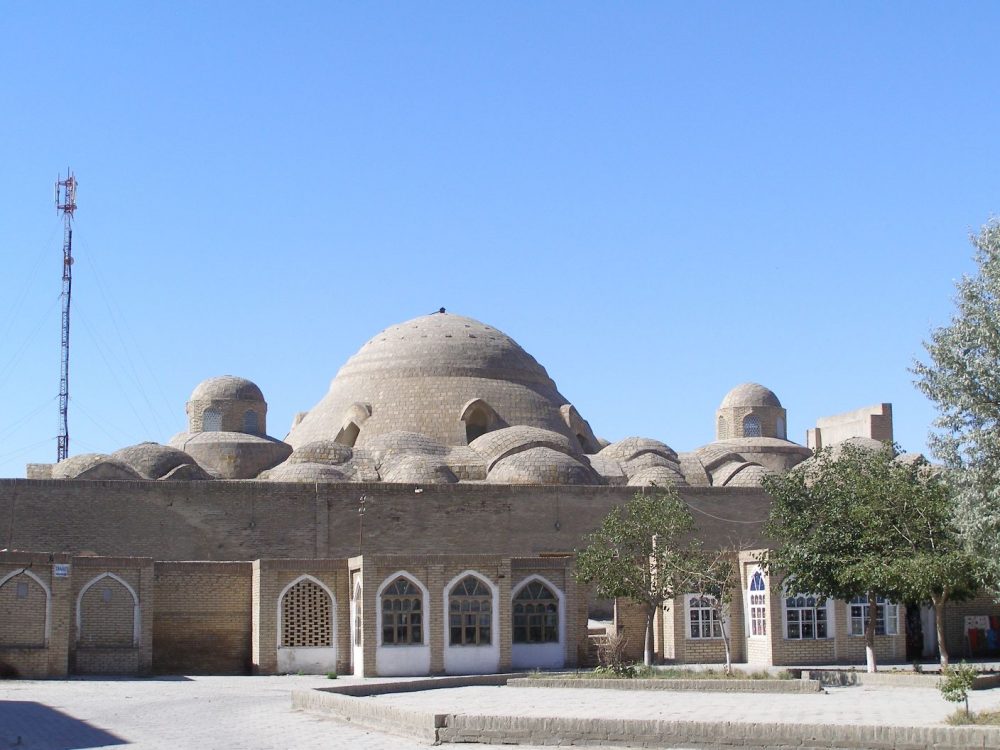 Ein kleines Gebäude in einer Seitenstraße identifiziert Toni für uns als eine alte Synagoge, die noch heute von den wenigen Juden Bucharas genutzt wird. Mein persönliches Highlight ist die alte Karawanserei Chanaka Nadir Diwan Begi: Eine Karawanserei – das Symbol für die Handelskarawanen! Ein ehrfürchtiger Schauer läuft mir den Rücken runter, als wir den Innenhof betreten. Da höre ich förmlich die Rufe der Händler, das Schreien der Kamele, das Lachen der Frauen! Alles wirkt so, als sei die letzte Karawane gerade erst gestern von hier aufgebrochen.