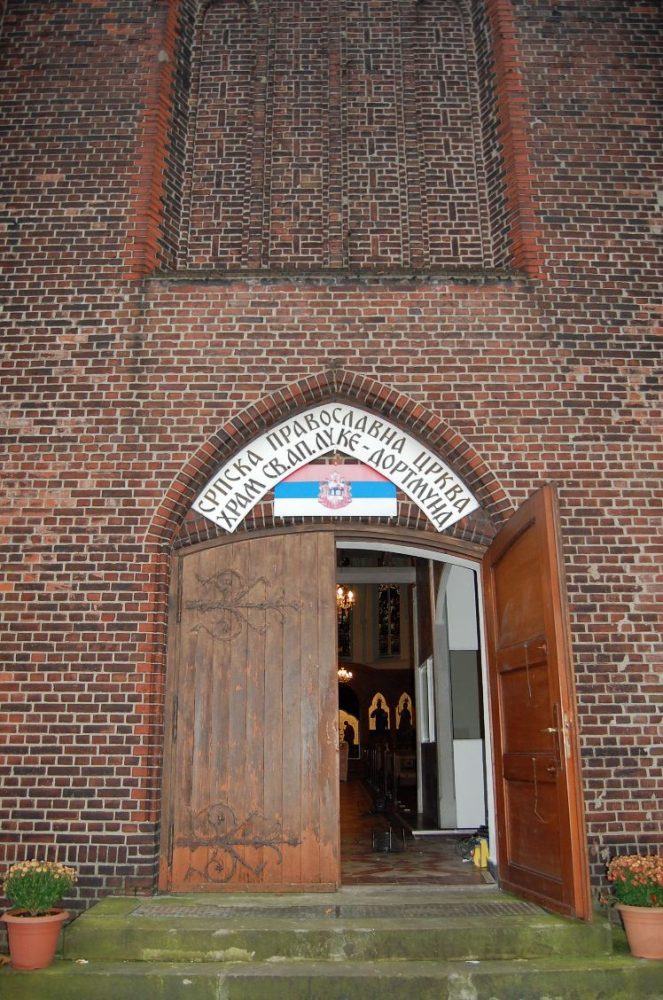 Am meisten hat mich aber der Besuch der Kirche beeindruckt. Man hatte die Kirche geschrumpft! Aus dem mächtigen Gebäude ist eine recht kleine Kapelle geworden. Dass die Kirche niemals einen Kirchturm besaß, ist mir als Kind gar nicht aufgefallen! Und katholisch ist die Kirche auch nicht mehr, sondern russisch-orthodox. Srpska Pravoslavna Crkva heißt sie.