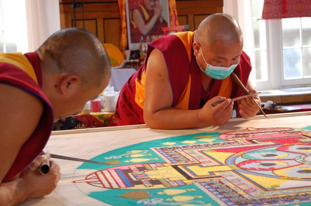 In der buddhistischen Mythologie gilt das Zentrum des Quadrats, der Berg Meru, als der Sitz der höchsten Götter. Dies wird häufig in den Mandalas gezeigt, die aus runden und quadratischen Formen zusammengesetzt werden und als Meditationsobjekt dienen.