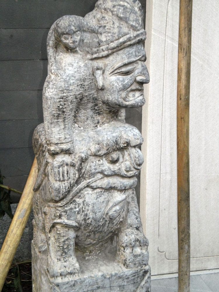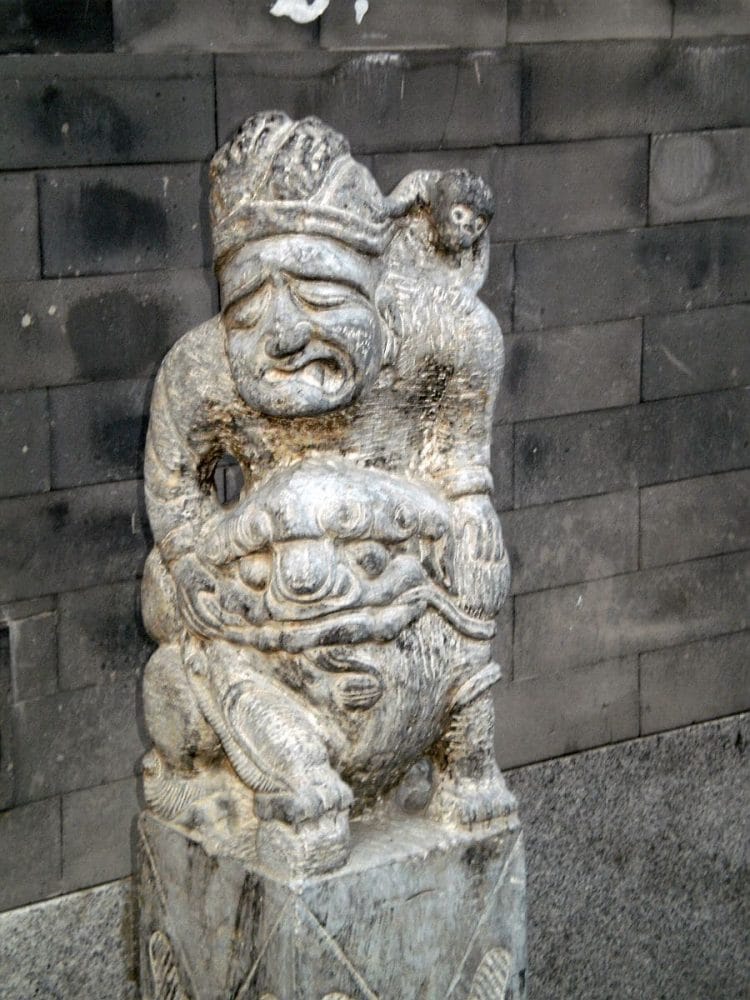 Vor dem alten Wohnhof eines einstigen Ministers in Peking habe ich übrigens diese beiden seltsamen Gestalten gesehen: