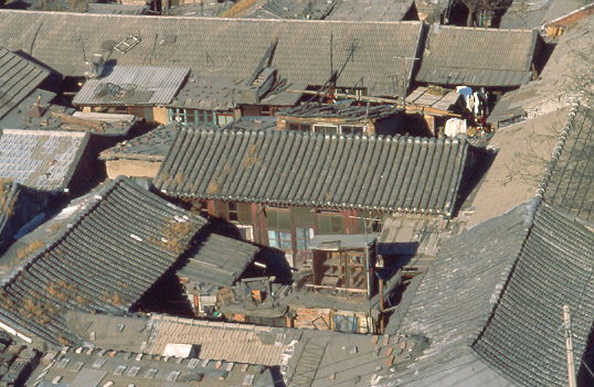 Noch weiter nördlich standen der Glocken- und der Trommelturm mitten in dem grauen Dächermeer. Vom Glockenturm hatte ich damals einen guten Blick in die Höfe der alten Siheyuans, den 4-Seiten-Höfen. Vollgestopft mit Holzlagern, Ziegeln, Vorratskrügen, Fahrrädern, Hühnerställen. Ein Leben in Enge mit vielen Menschen in kleinen Zimmern.