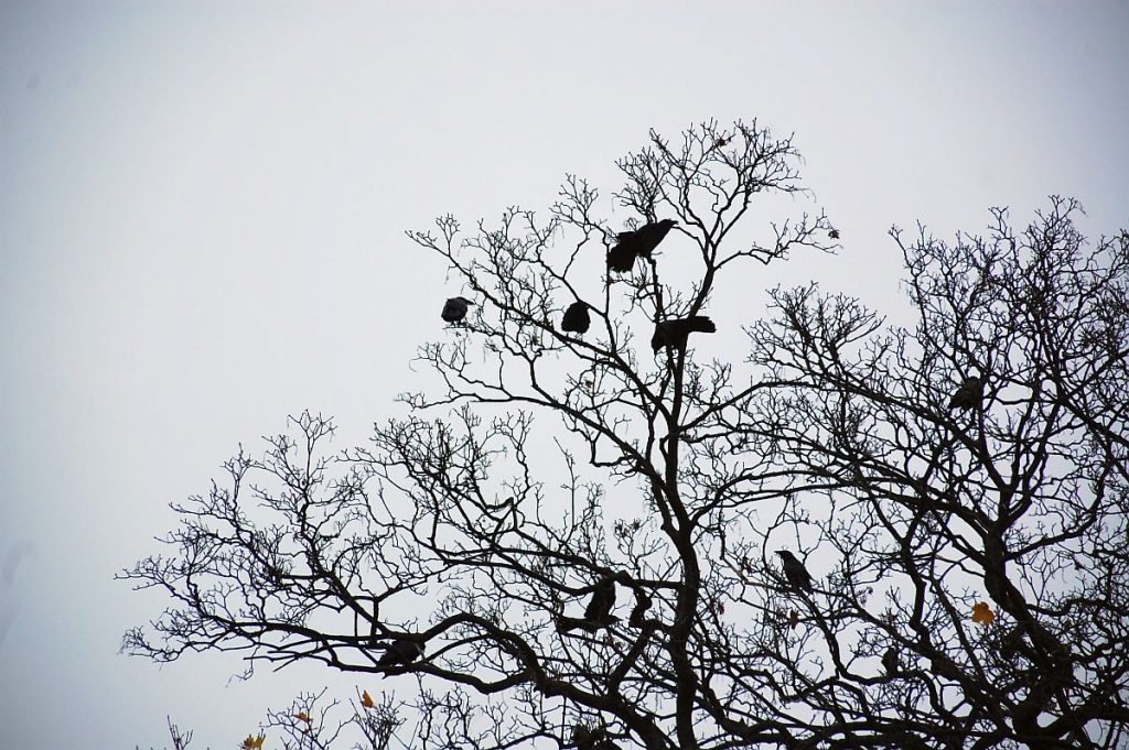 Seht Ihr das Herz? Schon von weitem lacht es mich an, das Herz, das die zwei Bäume im grauen Tag bilden.
