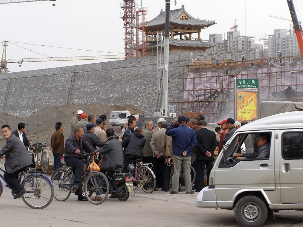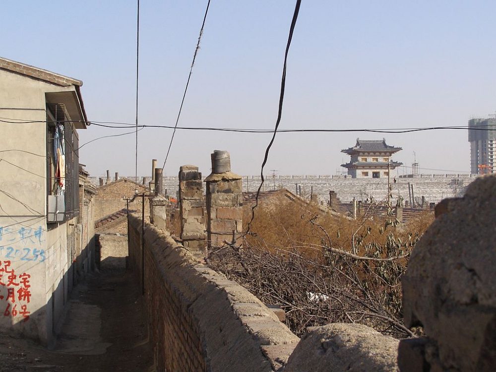 Viele Städte in China hatten einst eine gewaltige Stadtmauer, Befestigungen gegen die Eroberer aus dem Norden. Die meisten sind in den 1950er Jahren abgerissen worden. Von manchen findet man die Spuren nur noch in den heute rechteckigen Stadtgrundrissen. Wo früher die Stadtmauer stand, hat man heute breite Ringstraßen erbaut. So wie in Peking.