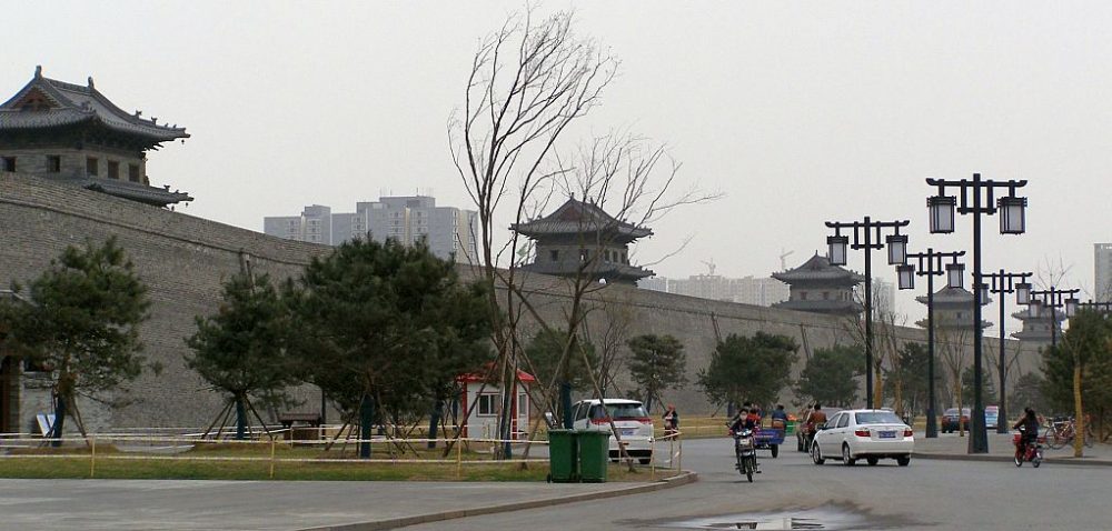 Viele Städte in China hatten einst eine gewaltige Stadtmauer, Befestigungen gegen die Eroberer aus dem Norden. Die meisten sind in den 1950er Jahren abgerissen worden. Von manchen findet man die Spuren nur noch in den heute rechteckigen Stadtgrundrissen. Wo früher die Stadtmauer stand, hat man heute breite Ringstraßen erbaut. So wie in Peking.