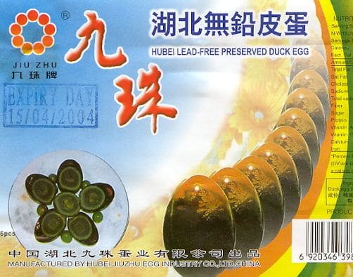 Tausendjährige Eier bzw. Hundertjährige Eier ( 皮蛋 pidan Ledereier) sind eine chinesische Delikatesse, in einem langen Prozess fermentierte Enteneier. Westler kostet es anfangs Überwindung, sie zu essen, denn das Auge isst mit, sagt man. Und das hat keinen Spaß an dem fast durchsichtig scheinenden dunklen Eiweiß und dem gelbgrünen Dotter.