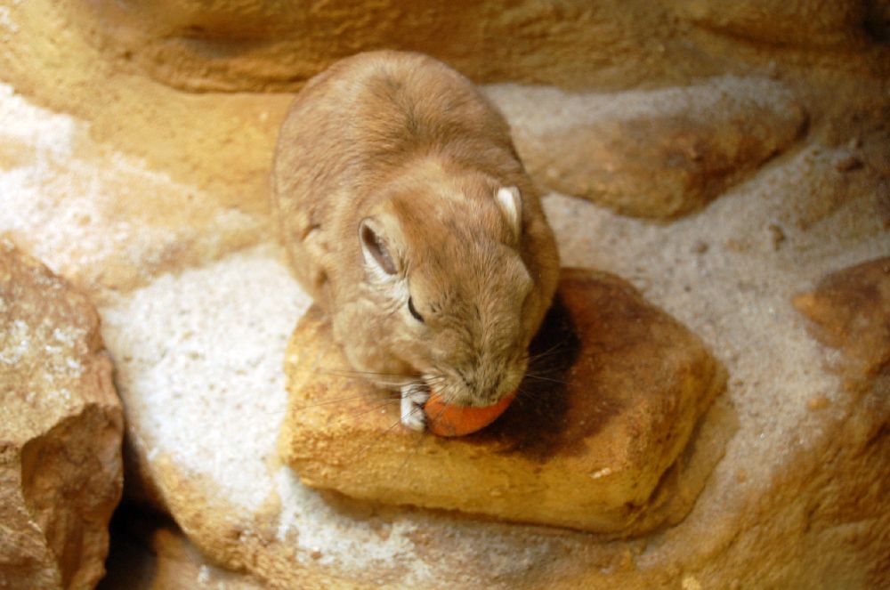 Im Frankfurter Nachttierhaus findet man ja nicht nur Nachttiere (und ich verstehe immer noch nicht, warum man ein Faultier im Nachttierbereich zeigen muss), deswegen eben auch die Gundis (und diverse andere Tiere). Am Eingang wird erklärt, warum das so ist (soweit ich mich erinnere), aber an die Erklärung erinnere ich mich nicht mehr.